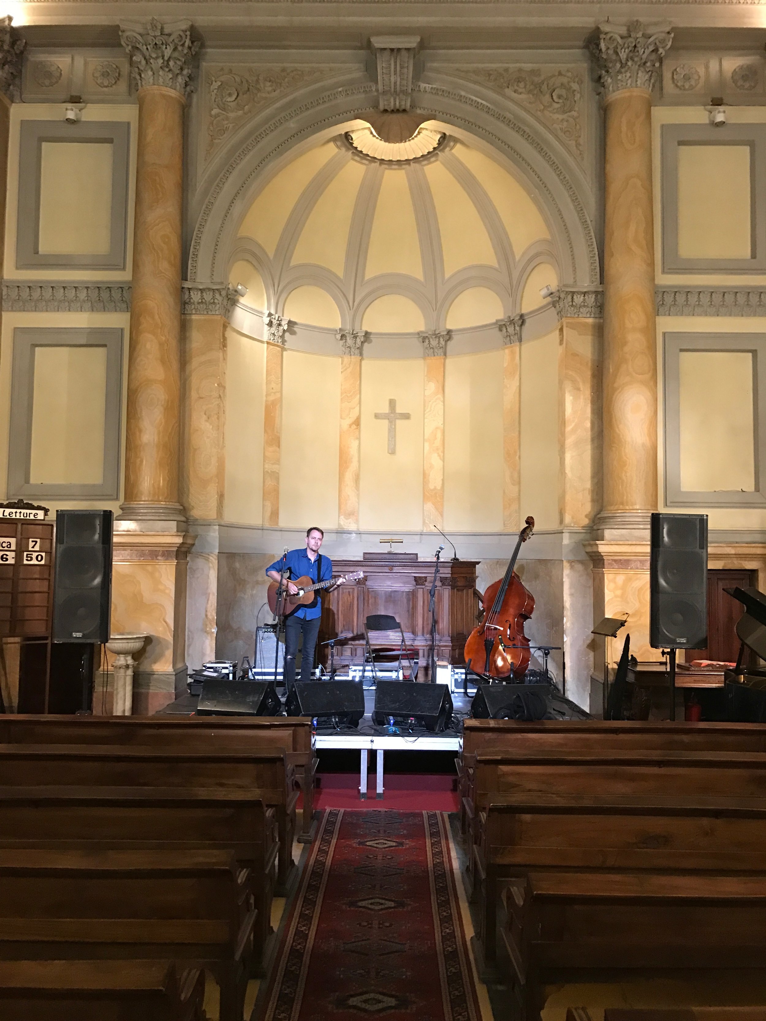 The show last night in Rome was quite an amazing experience. The venue was an old church right in the centre the city. In many ways the acoustics of churches make performing challenging when amplified through a PA, but singing in that room was just something else. I guess it stands to reason that the acoustics are specifically designed to carry voice, but you really do feel it when you sing out. Its as though there is a particular character of the sound which its just impossible to create or hear in any other environment.